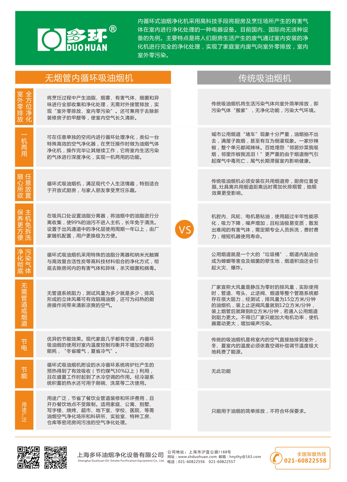 多環(huán)公司家用無煙管內(nèi)循環(huán)油煙機(jī)與傳統(tǒng)吸油煙機(jī)的比較