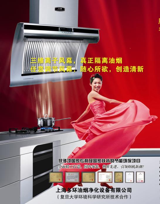 發展無坦途,創新無止境,只有不斷創新,才能讓您成為焦點.現在,多環廚房專家已為您有效的解決油煙污染推出了新方案.三維離子風幕技術,為吸油煙機帶來新變革,在油煙機正面,任意多個角度設置風幕,封死油煙逃逸方向,有效的隔離油煙,實現全面除煙.另有活性炭凈化裝置,可以凈化廚房空氣,給您一個清新、自然的家。